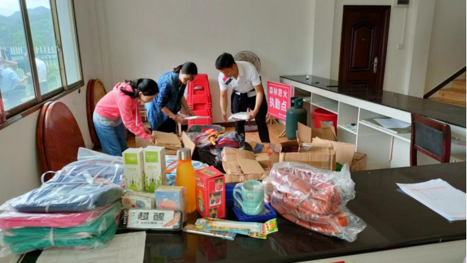 教工党支部在屯上村村委会清点捐赠物资 韦玮摄