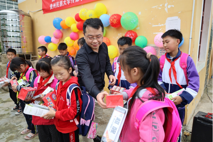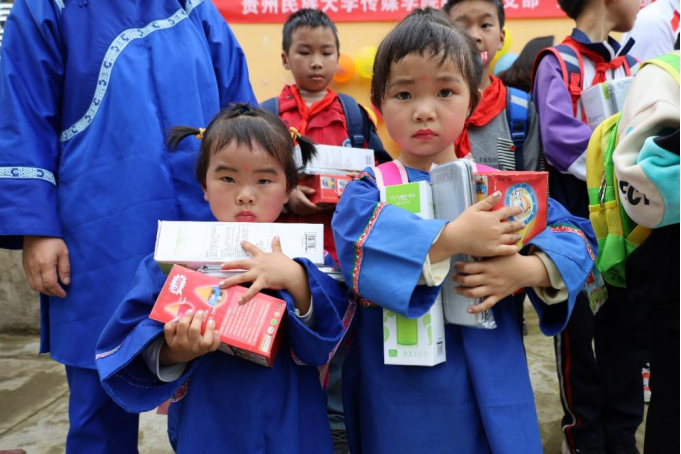 教工党支部携手贵阳忆品园食品有限公司、贵州康之源贸易有限公司,满载12大箱学习用品,来到镇远县报京乡,与小朋友们过了一个特别的儿童节。