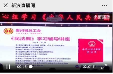贵州省总工会办公室按照《贵州省学习宣传<中华人民共和国民法典>工作方案》要求和省工会党组理论学习中心组安排,定于9月18日举办学习宣传《中华人民共和国民法典》专题讲座,我院积极组织教职工进行线上观看,部分学习情况如下: