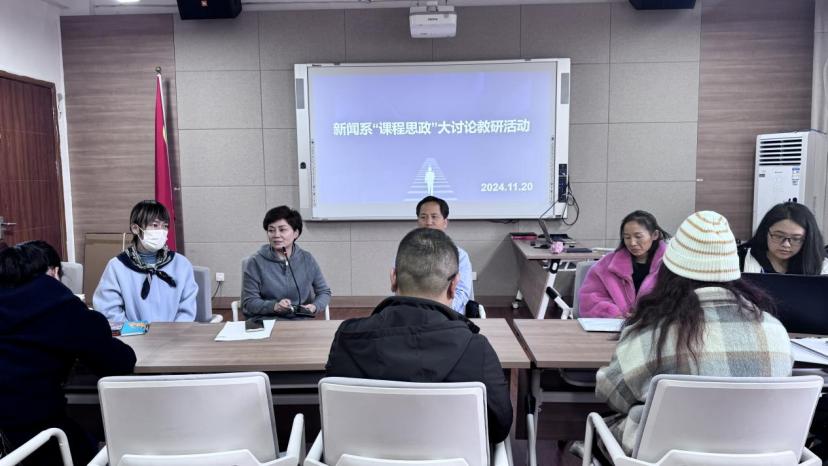 院长钟华、副院长伍顺比参加活动并给予指导,新闻系主任管倩主持活动,新闻系全体教师参与了本次研讨。