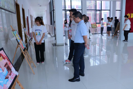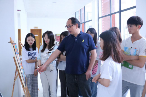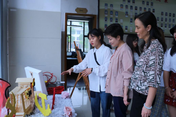观展中,领导们对作品给予了充分肯定,认为作品的形式各具特点,在设计构图上和材料上都具有创新点,如果能使用H5等新媒体方式加大传播力度,更能体现出数字媒体艺术的专业性。