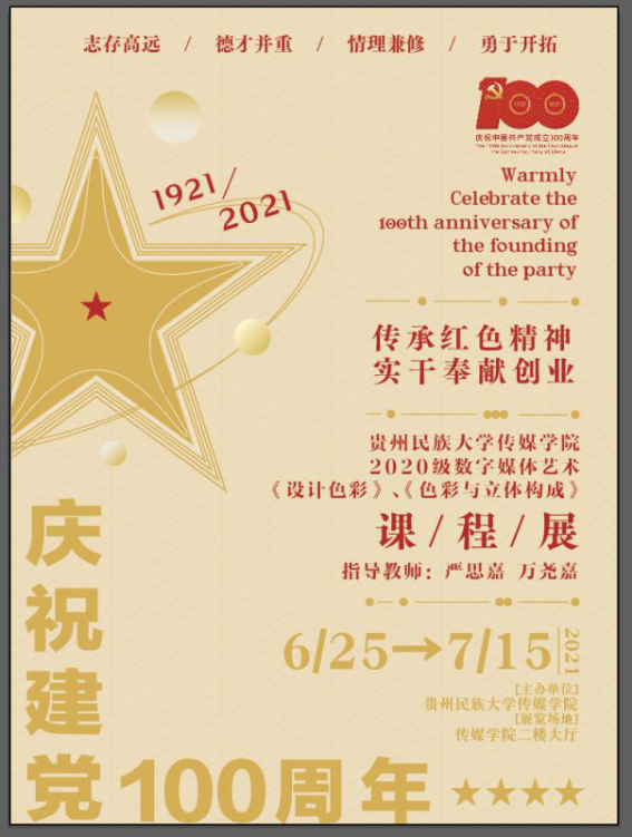 “传承红色精神,实干奉献创业”课程展是为庆祝建党100周年举办的主题活动,以色彩插画与立体构成作为作品最终呈现方式,让学生“敢闯会创”,引导学生立足时代、扎根人民、深入生活,树立正确的艺术观和创作观。作品形式多样,构成丰富,通过对“党史”的学习,将党史学习教育贯穿育人全过程,融入立德树人和铸魂育人各环节,切实做到学史明理、学史增信、学史崇德、学史力行。