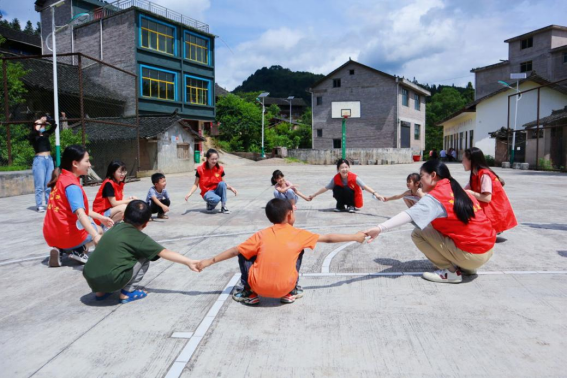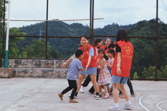 通过简单的交流拉近了志愿者与小朋友们之间的距离,大家开始变的亲近起来。志愿者们带着小朋友们玩老鹰捉小鸡、丢手绢等游戏,教他们唱歌。在同学们的鼓励下,害羞的小朋友也张开了口,跟唱起一首首耳熟能详的经典儿歌。