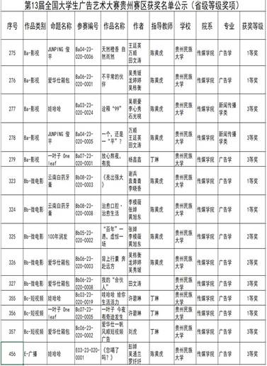 8月27日,第13届全国大学生广告艺术大赛贵州赛区获奖名单公布。随着获奖名单的公布,贵州参赛高校也纷纷传来好消息。我校性爱短视频