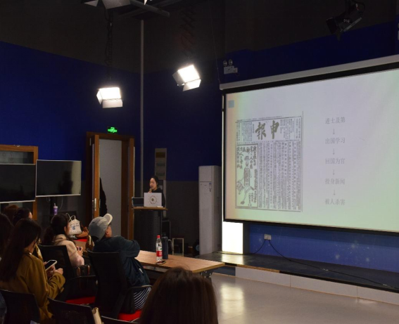 在本次读书分享会上,新传与广播电视学专业的九位同学分别选取黄远生新闻作品展开阅读交流,点评老师从不同的专业角度和学术范围进行点评。2021级新闻与传播研究生熊曼以黄远生的生平与“四能说”为主题进行读书分享,详细地介绍了黄远生的“四能说”在当今的价值意义。熊曼在分享会上总结:“黄远生将自己短暂的一生活成了传奇,自弃功名投身新闻业,在混乱的年代用新闻报道唤醒世人,拯救社会,让世人感受到了新闻的力量。”
