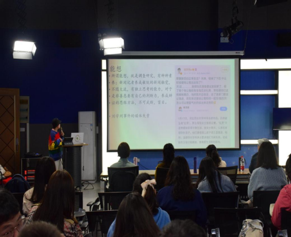 2021级广播电视学研究生张蕊从“能想、能奔走、能听、能写”四个方面对黄远生对后世的影响和贡献进行阐述,她说:“‘四能说’概述了新闻记者的基本素养,在当时具有创造性的意义,对于提高新闻素养,摒弃不好的社会风气具有一定作用,而温习‘四能说’对于我们传媒学子将来走上新闻道路依然是基本的要求。”
