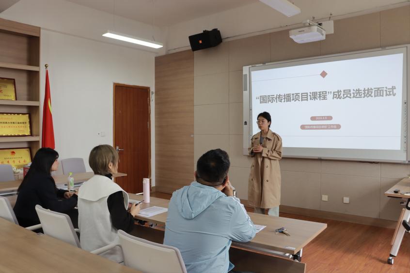 为拓展国际传播视野,聚焦国际传播项目课程专业技能与实践能力,4月9日,“国际传播项目课程”成员选拔面试在性爱短视频 党员活动室进行。新闻系主任管倩老师、赵奉军老师、李娟老师担任面试评委,参与面试的学生分别来自新闻学、传播学、广播电视编导、网络与新媒体专业,共有35名学生参加面试选拔。