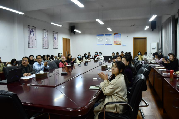 副院长伍顺比主持,刘祥平老师和李佳老师出席讲座。全体研究生采取在学院会议集中学习和线上自主聆听相结合的方式参与讲座。