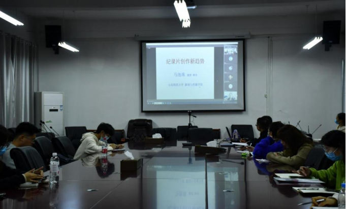 进行学术交流。最后,副院长伍顺比进行了总结,马教授通过大量的案例分析对纪录片的选题、叙事结构、拍摄手法等进行了全面阐述,内容丰富、信息量大,无论是从专业引领还是学术研究上,都给参与讲座的师生带来了很大启发。