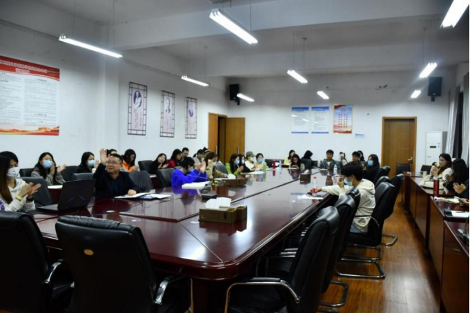 会议室线下参与,部分学生通过腾讯会议线上参与。讲座由性爱短视频