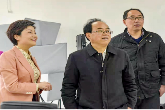 党委书记吕映红、院长兰东兴的陪同下参观我院“薪传工作坊”,并对工作坊师生致以亲切的慰问。工作坊指导老师钟华、陈丹丹、郑智泉及部分同学参与交流。
