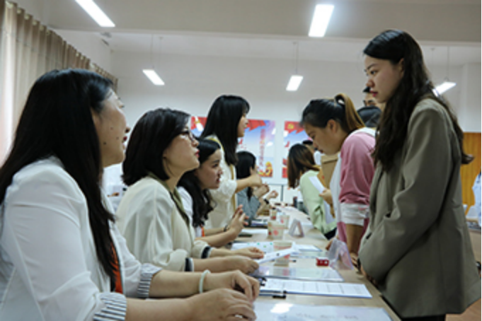 在党员会议室举办联合招聘会,此次招聘会有大语坤文文化传播有限公司、思库教育培训学校有限公司、超越教育培训中心有限公司、天歌北极星艺术学校有限公司、精汇大教育培训学校有限公司共5家单位来我院招聘人才。