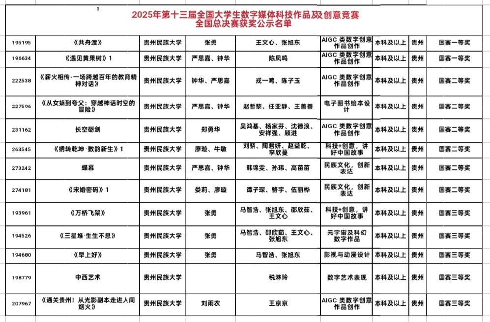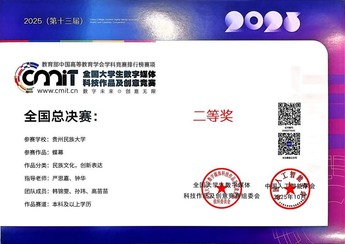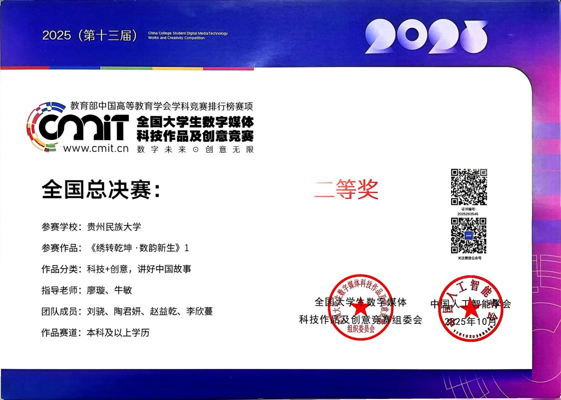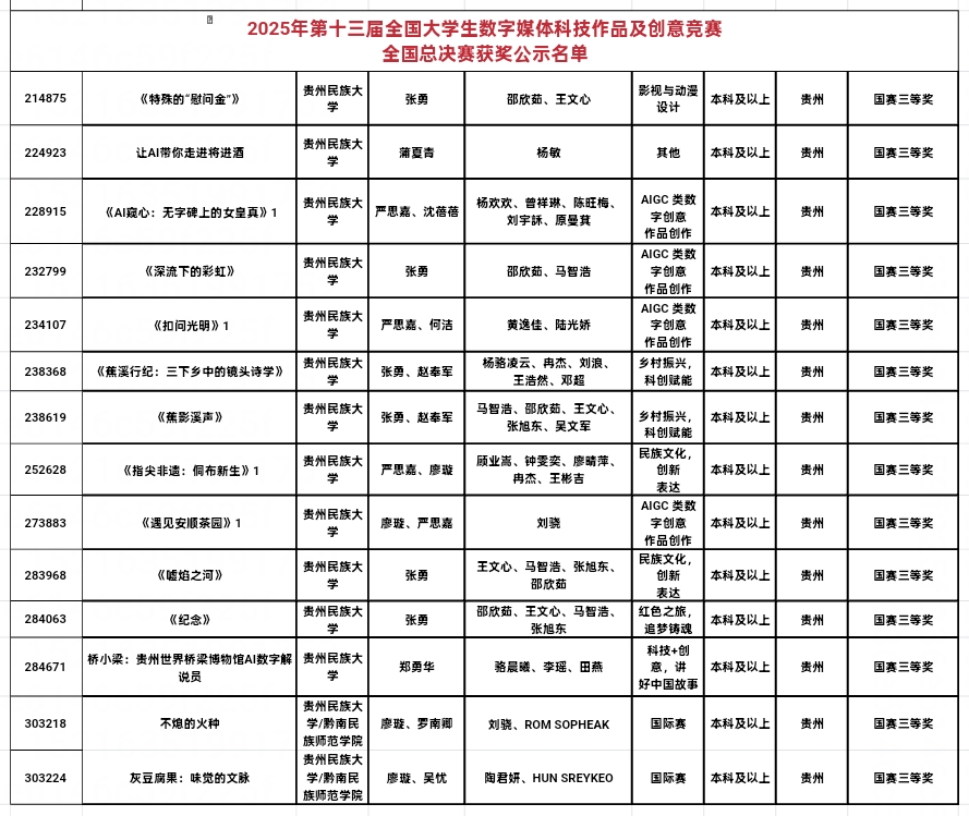 推送的参赛作品涵盖AIGC数字创意、民族文化创新表达、乡村振兴科创赋能等多元类型,以扎实的技术实力和极具地域特色的创意表达,充分展现了“智能科技”与“创意设计”的深度融合成效,更凸显了我校在民族文化数字化传承与创新领域的独特优势。