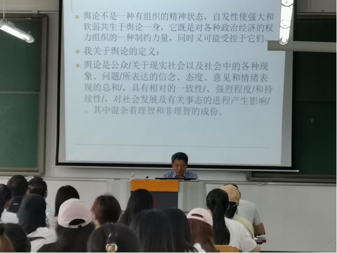 讲座中,陈力丹从舆论学概念、定义、八要素、形成等八个方面,条理清晰地为同学们讲述舆论学相关知识点。通过马克思恩格斯论舆论在现代社会的特征、舆论力量表现生动具体的分析了舆论定义,并对畸形的舆论形态和群众性事件处理提出了自己的观点。