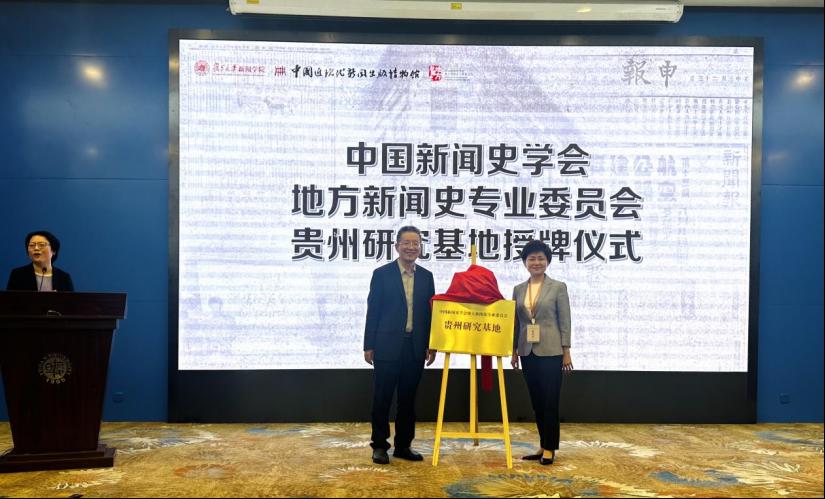 在开幕式上,中国新闻史学会地方新闻史专业委员会理事长蒋建国教授代表委员会为贵州研究基地授牌,此举标志着中国新闻史学会地方新闻史专业委员会贵州研究基地正式成立。