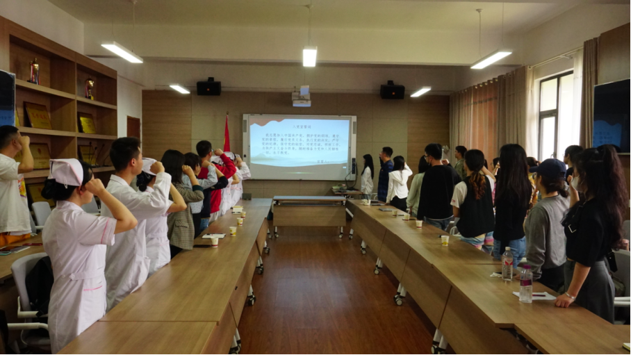 研究生第一、二党支部与贵州医科大学护理学院学生第一党支部共同重温入党誓词。