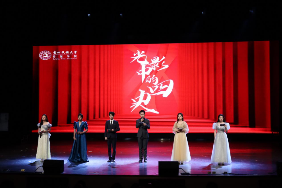 穿越历史长河,回望光影中的“四史”。展演分为“党史”“新中国史”“改革开放史”和“社会主义发展史”四个部分。每一部分都精选两到三部经典电影片段,由20级广播电视编导班、21级播音主持艺术班、21级广播电视编导班、21级影视传媒卓越人才班的同学们共同演绎呈现。历史和现实相互交织,过去与未来招手呼应,演员们用精湛的演技带领着观众见证那段峥嵘岁月里的苦难辉煌。