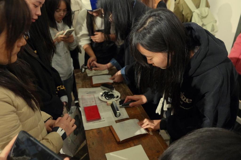 师生还有幸用自己的双手体验了报纸的印刷过程,以及触摸感受1935年的《申报》原件实物的质感。