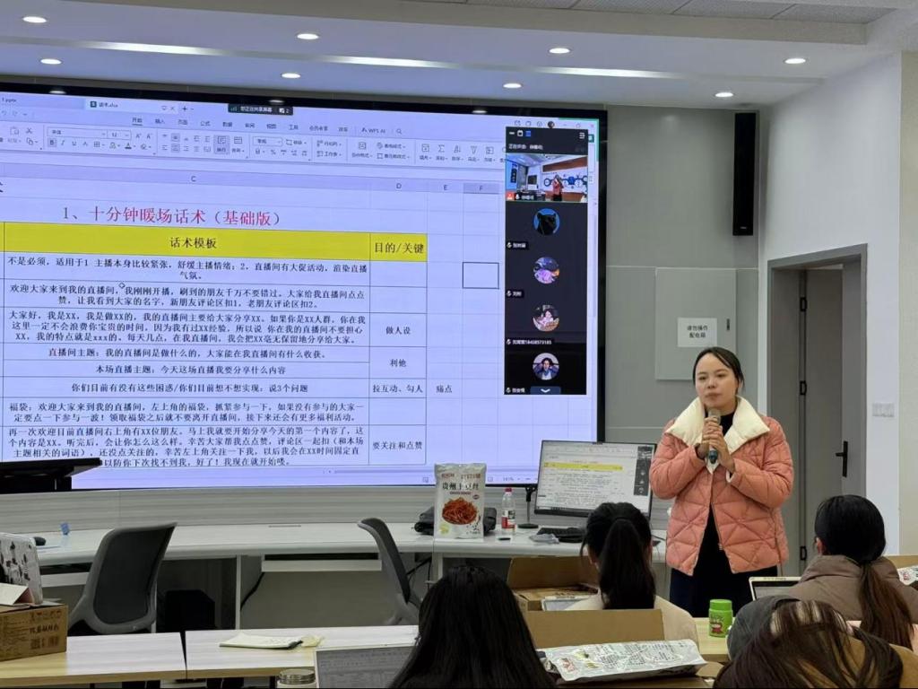 全天课程始终围绕“实用、落地”展开,每一个知识点都针对直播实操中的实际问题。袁茜老师表示,后续课程将延续“理论+实战”的教学模式,围绕直播话术进阶、互动技巧升级、流量获取与转化、直播间场景搭建等关键主题逐步推进。为强化实操能力培养,后续将专门设置实战开播实训环节,让学员分组完成直播间搭建、流程设计等全流程操作,在模拟真实的直播场景中锤炼话术运用、互动引导、流量运营、订单转化等核心技能。老师将全程跟踪实训过程,针对实操中出现的问题提供一对一针对性指导,助力学员实现从理论知识到实操能力的高效转化。