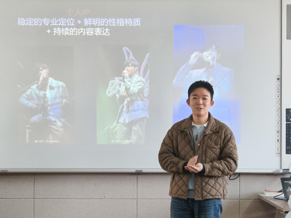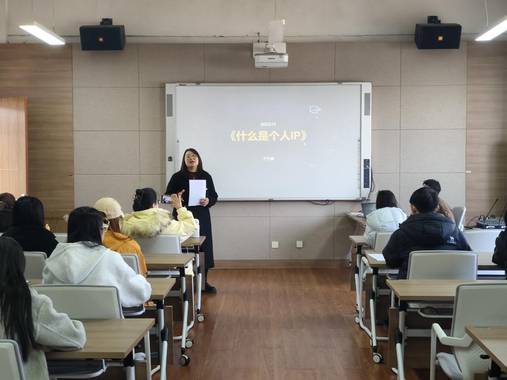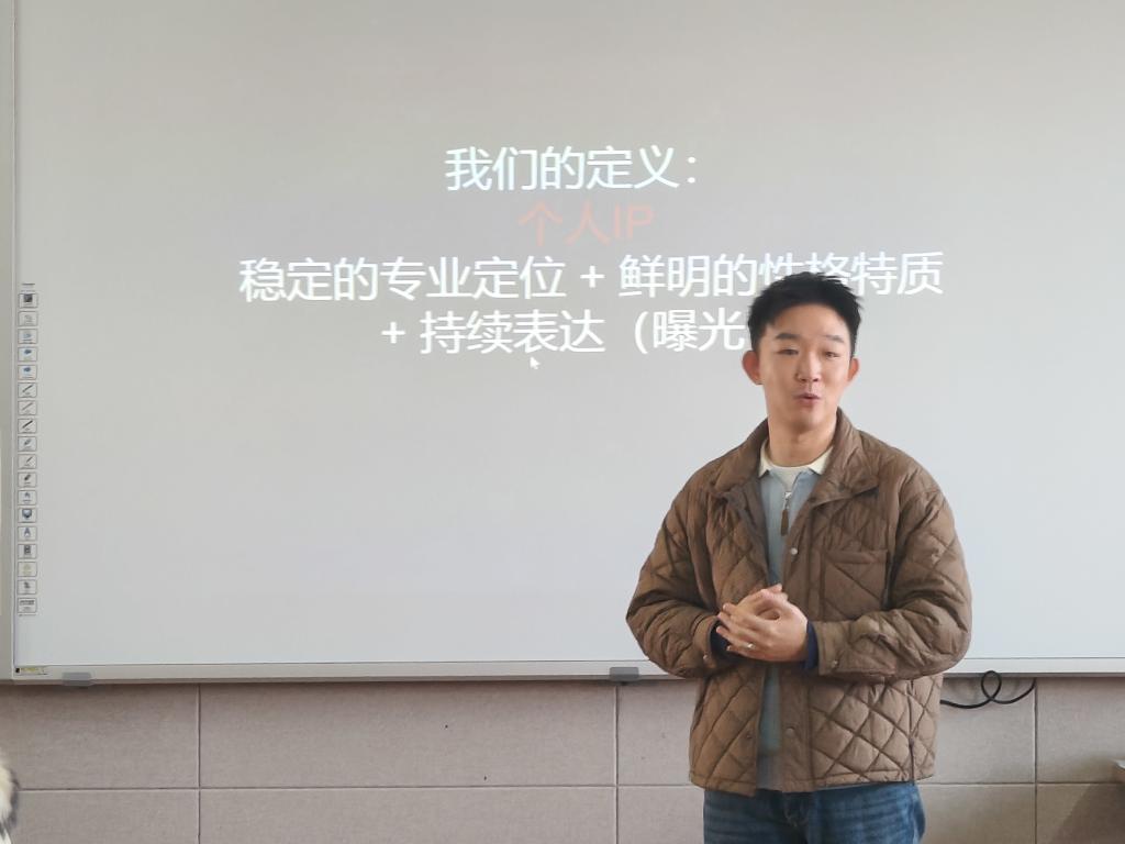 讲座以互动提问开场,于子涵引导学生思考“什么是个人IP”,并结合“李子柒”“派小轩”等案例,系统阐释个人IP的核心构成,即“稳定的专业定位+鲜明的性格特质+持续表达”。于老师进一步厘清了网红、博主与个人IP的本质区别,指出个人IP是“情感与信任的深度连接”,能够实现长期价值沉淀。