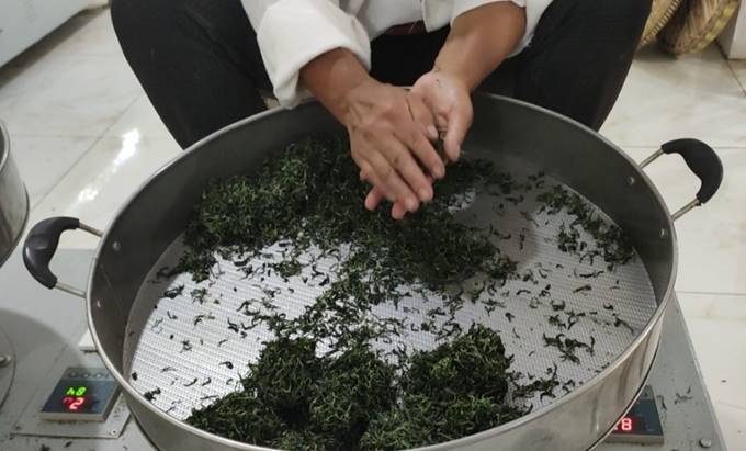 “黔地无闲草,境内多好茶”。黔茶于唐代已著名,品种繁多,“朵贝茶”就是贵州名茶之一。它产于安顺市普定县化处镇朵贝村将军山脚下磨香河畔,穿过蜿蜒的村道,我们驱车来到了磨香河畔的贵州朵贝古茶开发有限公司生产基地,工作人员林先生接待了我们。