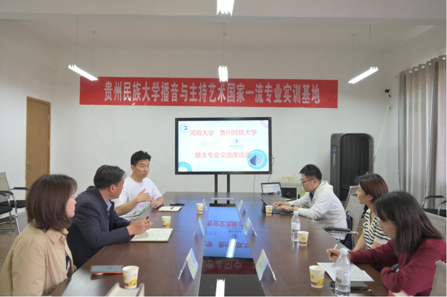 座谈会上,河海大学播主专业播音创作教学组负责人宋文月首先简要介绍了河海大学播主专业现状,教师焦庆、崔倩倩对该校播主专业的发展需求与发展目标进行了概述。随后,邹璿院长对我院播主专业的教学特色和优势进行了介绍,并分享了相关经验。他强调:“我院在培养播主专业学生时,注重学界与业界相结合的模式,让学生在学好理论知识的同时兼顾自身实践能力的提高。”