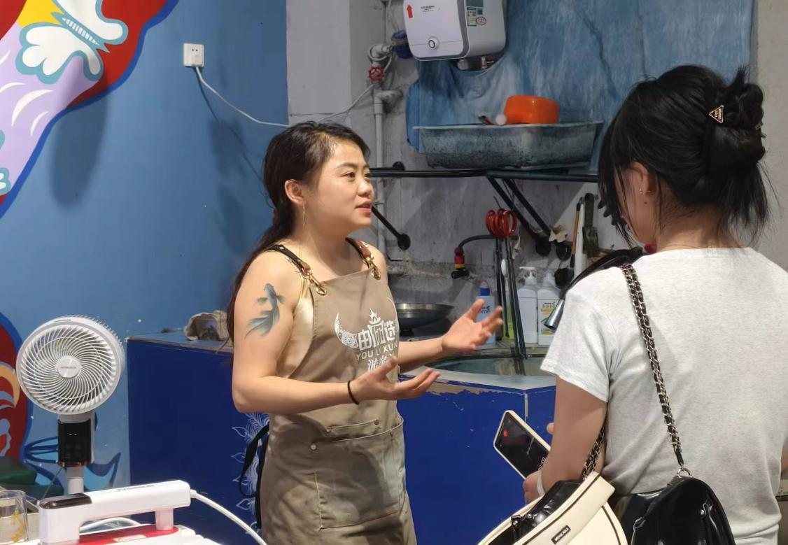 除此之外,徐靖也培养了一些喜欢蜡染技艺的学生,其中年龄最小的只有六岁,徐靖通过对学生的培养让他们多一门手艺去社会中生存,也让非遗蜡染技艺被更多的人学习。徐靖说:“他们学好以后走进社会,择业困难时这也可以成为他们养活自己的一门技艺。”