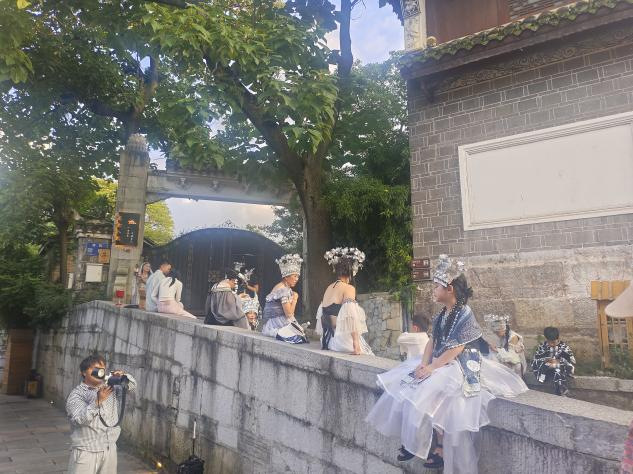 随着旅拍行业的盛行发展,更多的旅拍从业者也将目光转移到青岩背街上。据了解,青岩古镇内的旅拍馆数量不下50家,来此拍摄的游客络绎不绝。大部分店铺提供的旅拍风格各异,但都能与背街巧妙融合在一起。背街也成了来到青岩古镇的网红打卡地,受到大众的欢迎。