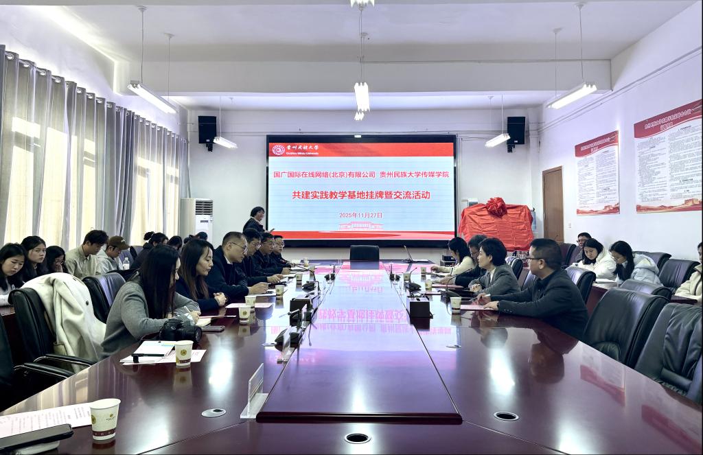 的建设发展情况。学院自创办以来坚守“立德树人”根本任务,依托贵州民族文化资源,形成了民族传媒特色鲜明、实践教学优势突出的办学风格,在多个专业领域培养了大批优秀毕业生。她还介绍了学院师资力量、实训基地建设等情况,并表达了在课程共建、实习就业等方面深化合作的意愿。