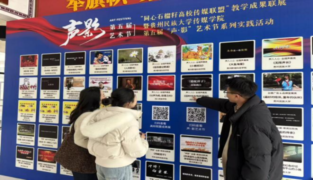 “本届艺术节采用线上线下双轨并行模式,为观众提供全方位观展体验。”负责布展的李娟老师介绍。线上展映矩阵联动贵州广播电视台动静APP等省级主流媒体平台,开设联盟专属展映专栏,构建集作品展示、互动评论、影响力分析于一体的数字化展陈空间;线下则精心打造“声影长廊”成果展区,在性爱短视频
