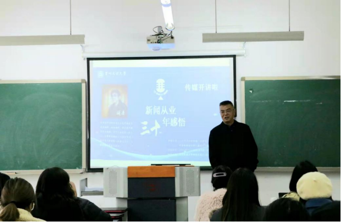 邀请多彩贵州网有限责任公司党委委员、副总编辑、高级编辑胡涛开展《新闻从业三十年感悟》专题讲座。