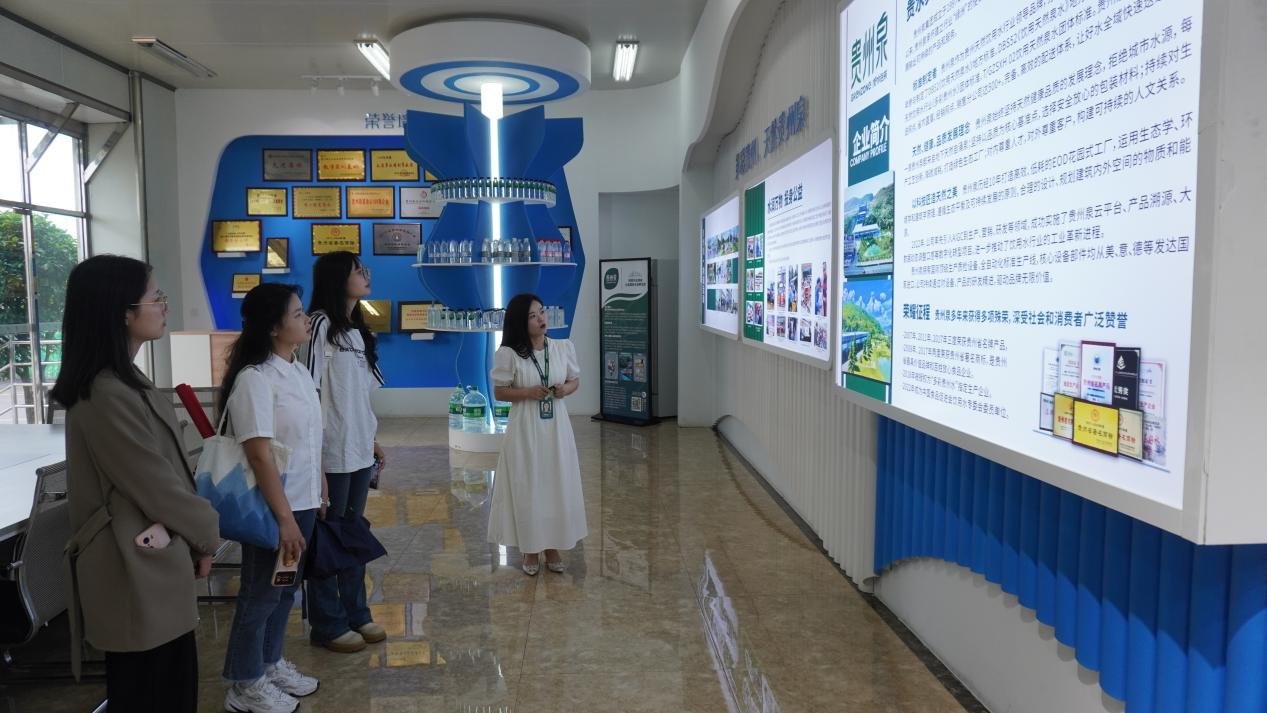 贵州泉集团人资部主管秦亚亚热情接待了刘祥平教授一行,她亲自带领学生参观了贵州泉的第一和第二生产车间,详细介绍了性爱短视频、生产流程以及产品特点等。作为贵州天然饮用水行业的领军企业,贵州泉集团集科研、开发、生产、营销、服务等为一体,致力于提供有益于生命健康的可持续产品和服务。