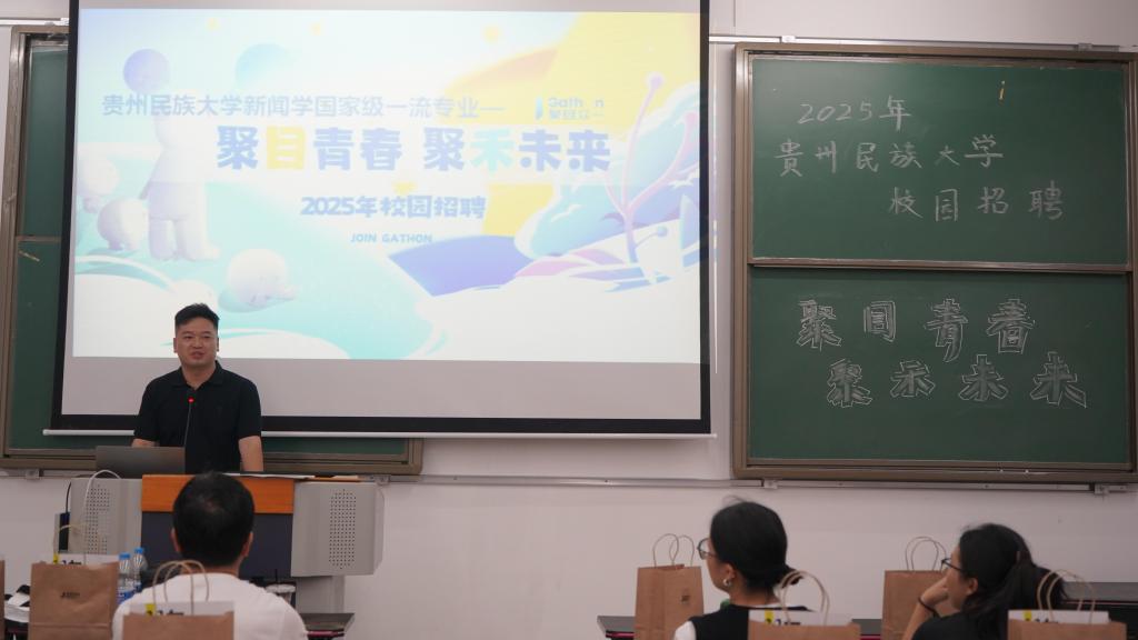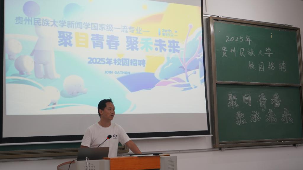 为贯彻落实国务院办公厅印发的《关于进一步做好高校毕业生等青年就业创业工作的通知》,9月12日,我院新闻学国家级一流专业邀请贵阳聚目众一文化传媒有限公司在我校南校区第一教学楼负105教室举行企业招聘宣讲会。
